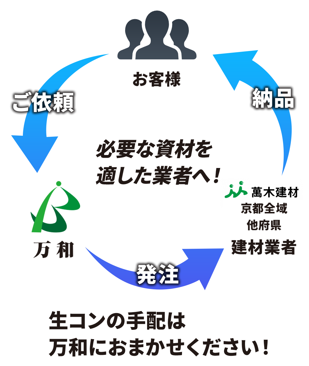 生コン、建材のことなら地元密着型、(株)萬木建材をプラントに持つ、萬木グループの商社である(株)万和にお任せください